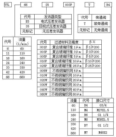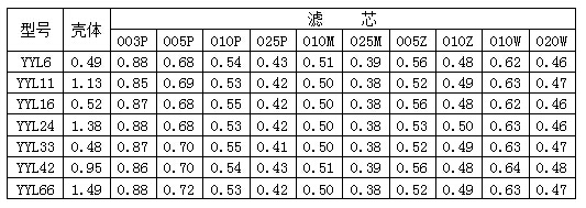 額定流量下的清潔濾芯壓降(單位:1×105Pa 介質(zhì)參數(shù):30cst 0.86Kg/dm3)